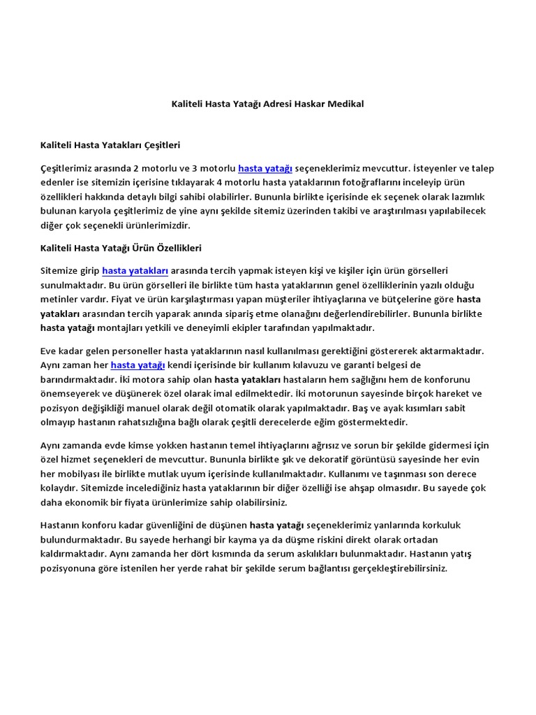 Pdf Kaliteli Hasta Yatagi Adresi Haskar Medikal Radikal Medikal Academia Edu