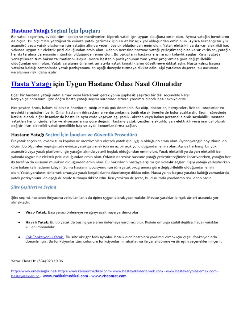 Surekli Yatan Hasta Yatagi Nasil Olmali Hasta Yataklari