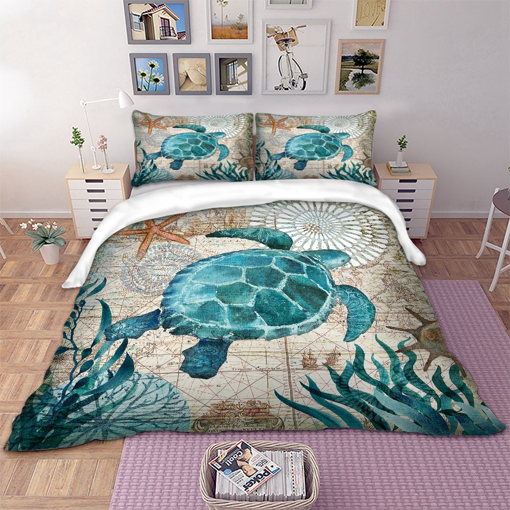 Children Bed Linen Duvet Cover Set Sea Turtle Printed Home Textiles With Pillowcases Bedding Coverlet King Couple Single Size Bedding Sets Aliexpress