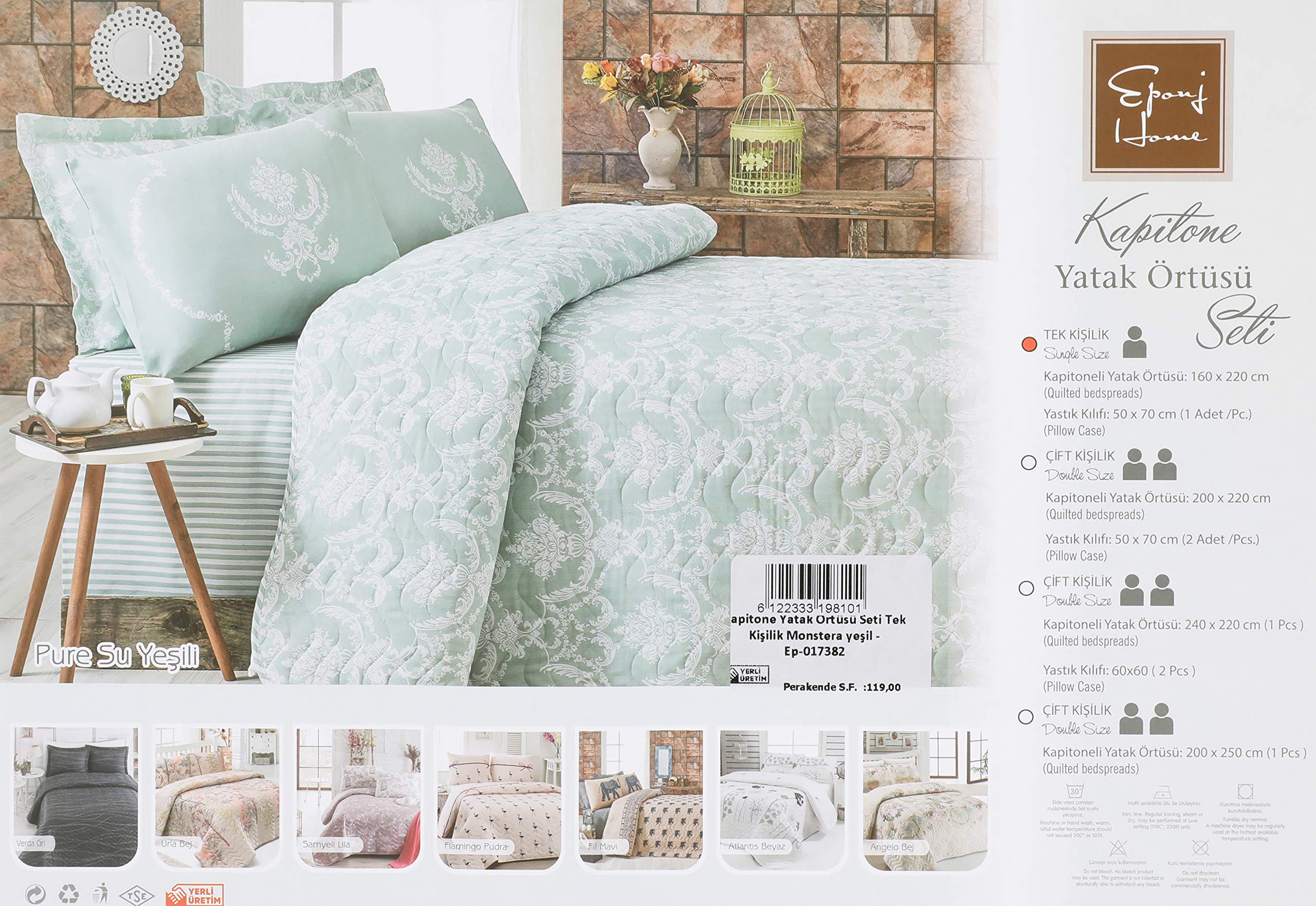 Kapitone Yatak Ortusu Seti Tek Kisilik Monstera Yesil Amazon Com Tr