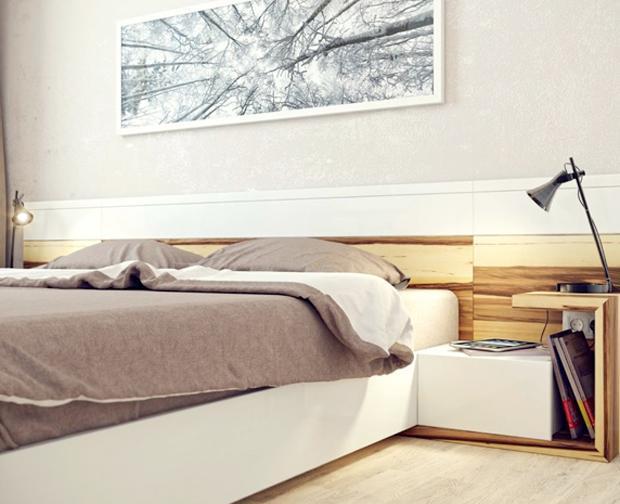 Yatak başı ve komidin dekorasyonu. Yatak kenarlarına konulan küçük masa görünümündeki çekmeceli minik dolaplardır.